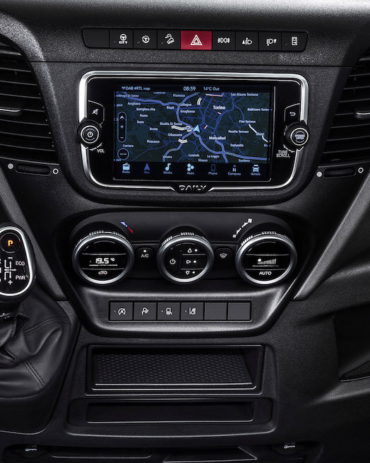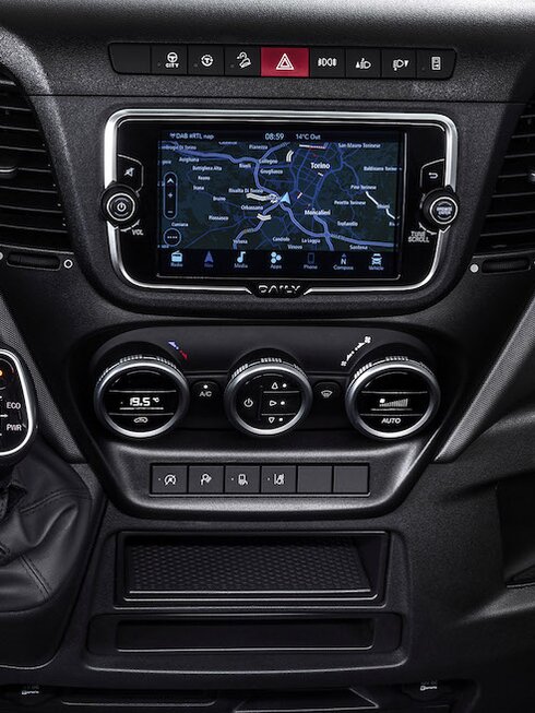 Das hochauflösende Farbdisplay bietet eine benutzerfreundliche, intuitive Schnittstelle für die einfache Interaktion mit dem DAILY und den Zugriff auf alle wichtigen Einstellungen des Fahrzeugs.