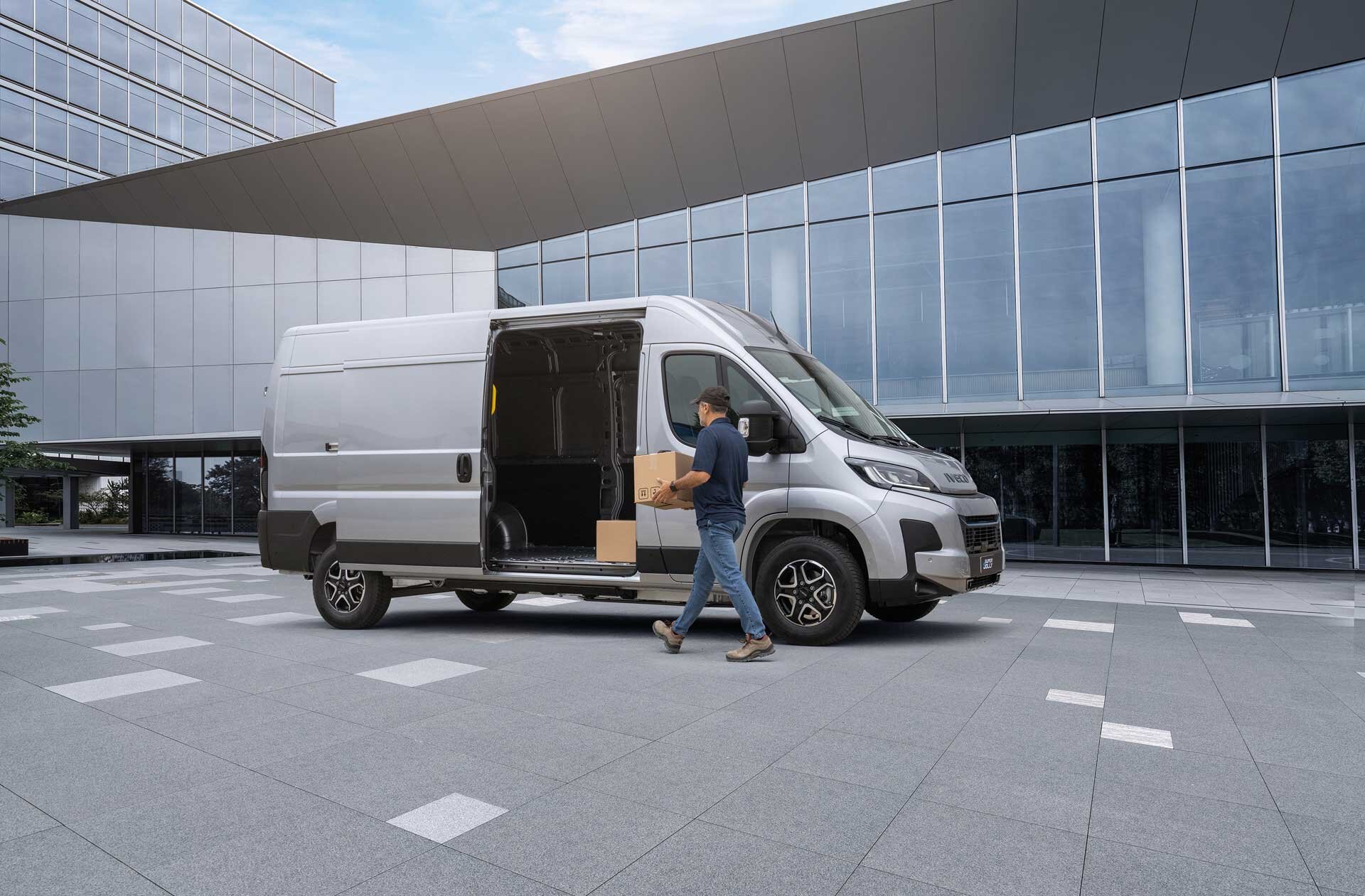 Genießen Sie die herausragende Reichweite ohne CO2-Emissionen: Der neue eSuperJolly ergänzt das Elektroangebot von IVECO mit einer Reichweite von bis zu 420 km und einer 110-kW-Hochleistungsbatterie.