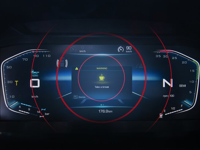Das neue 10-Zoll-Kombiinstrument ermöglicht dem Fahrer, alle Anzeigen und Warnleuchten auf einen Blick einzusehen.