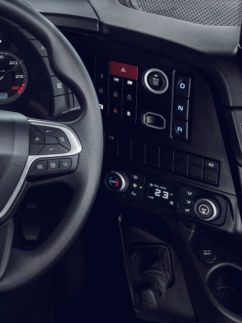 Fühlen Sie sich im geräumigen Fahrerhaus, das auf Komfort und viel Stauraum ausgelegt ist, wie zu Hause